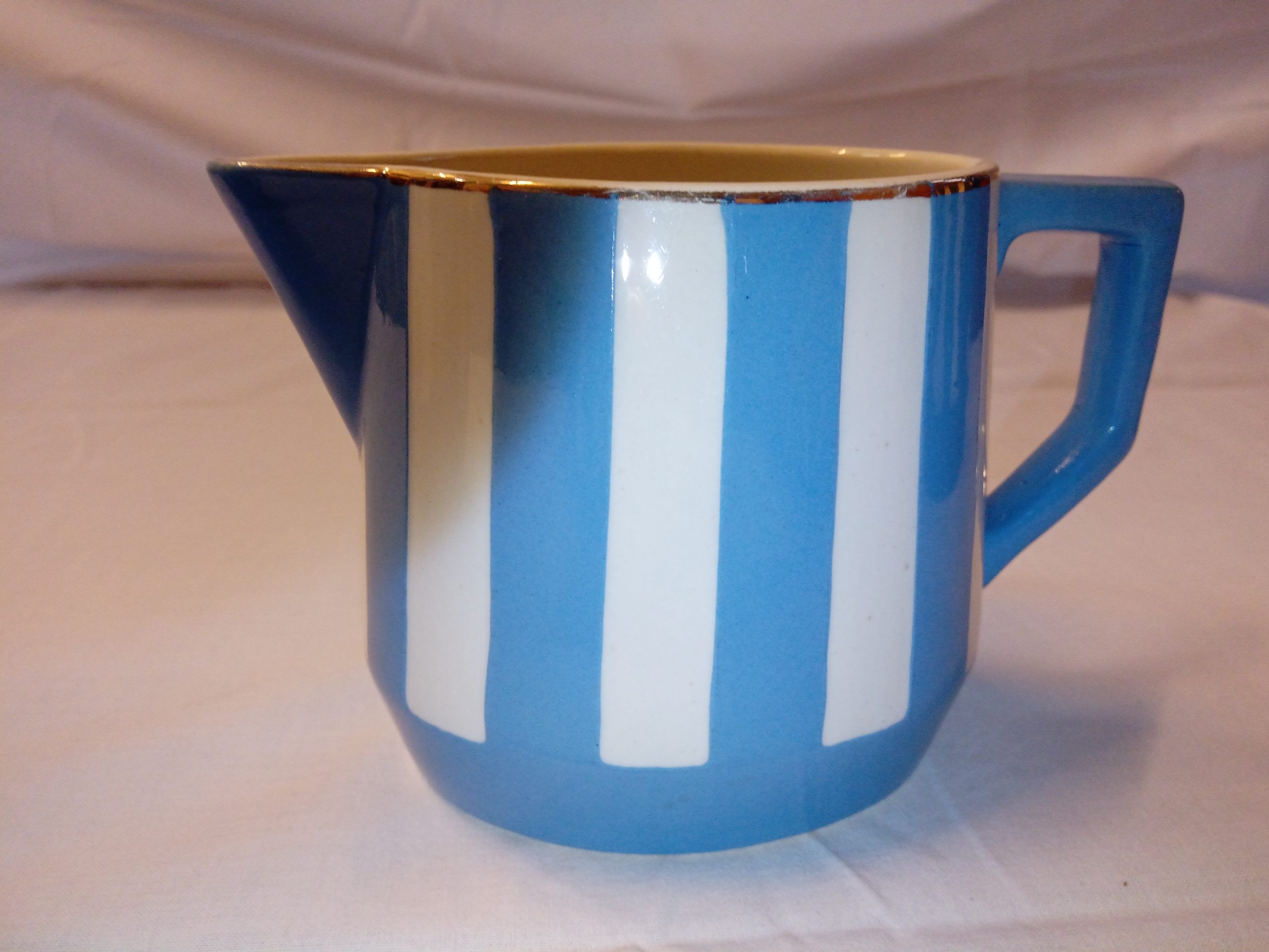• pot à lait Fox Trott, art déco, Sarreguemines, bleu et blanc